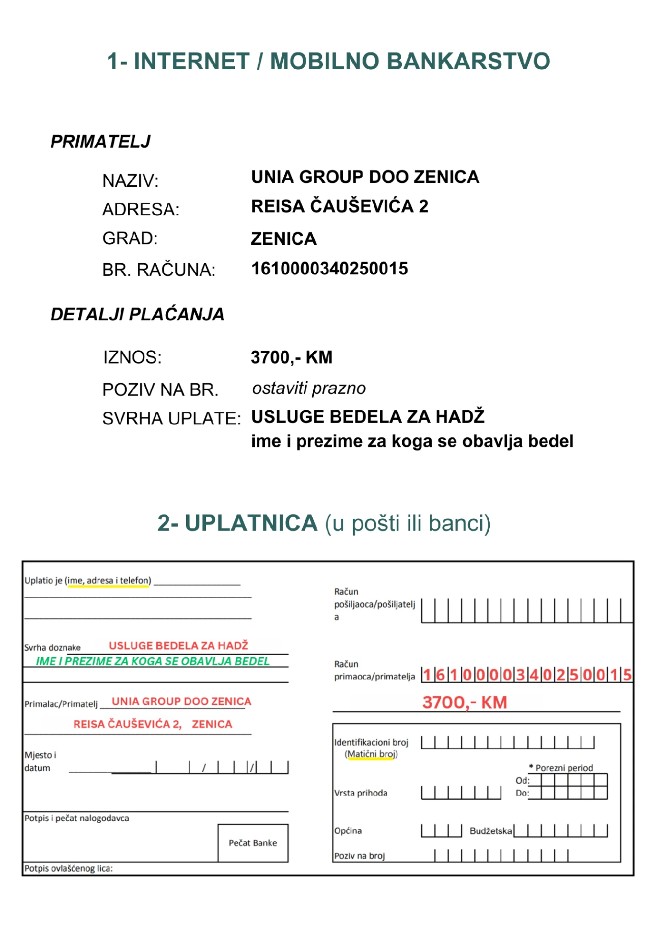 Instrukcija za uplatu